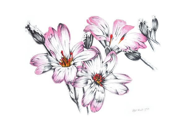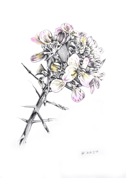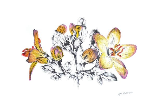Kwiaty 4 - ołówek, kredka na papierze 210g. - 30x42cm