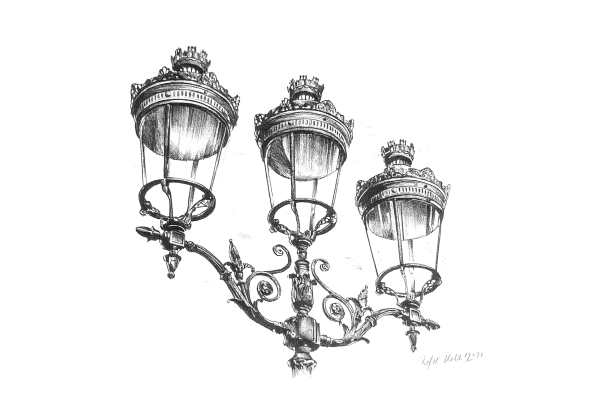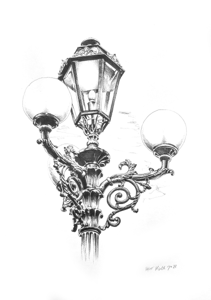 Uliczna latarnia 3 - ołówek na papierze 210g. - 30x42cm