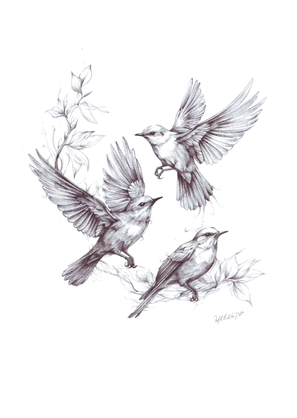 Ptaki - ołówek na papierze ecru 210g. - 30x21cm