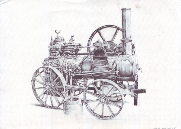 Traktor parowy - ołówek na papierze 210g. - 30x42cm lekki DEFEKT ze względu na wiek pracy. Możliwość wykonania podobnego rysunku na zamówienie